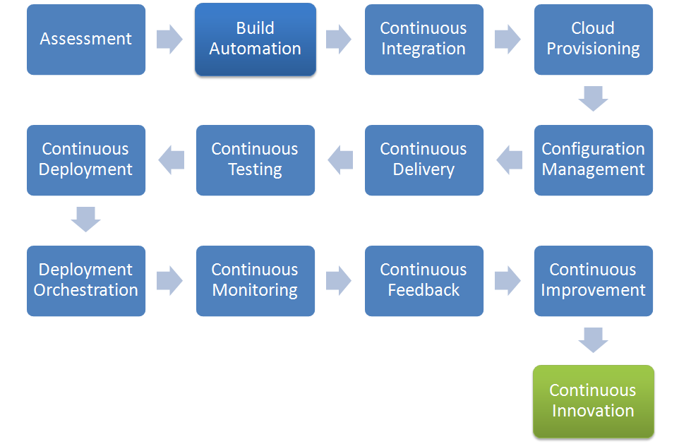 Häufig führen Probleme und Ineffizienz zu Veränderungen. Hierdurch hat sich aus einem Wasserfallmodell die Agile Methodik entwickelt. Eine Kultur zu verändern geht nicht über Nacht und benötigt sehr viel Zeit. Hieraus resultiert, dass DevOps als Kultur schrittweise eingeführt und akzeptiert werden muss. Jeder Schritt ist unabhängig von einander zu implementieren und sollte keine Abhängigkeiten zu anderen Schritten haben 20.