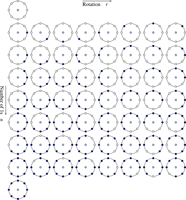 Um ein uniform Pattern zu erkennen braucht man eine binäre Zahl (hier werden 8 Bits als Beispiel genommen) und geht sie von links nach rechts durch. Dabei werden Bittransitionen gezählt. Eine Bittransition ist dann vorhanden, wenn die Zahl sich von 0 auf 1 verändert und umgekehrt genauso. Wichtig hierbei ist zu beachten, dass auch der letzte Bit mit den ersten Bit verglichen wird.[1.6]