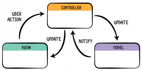 Die View Komponente subscribed auf die Daten des Models und updated seine Sichten entsprechend der Daten, sollten sie geändert werden. Mit der View Komponente werden die Benutzerinteraktion realisiert. Diese kennt ebenfalls den Controller, ist jedoch nicht für die Weiterverarbeitung der Daten zuständig.