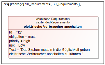 Abbildung 8 zeigt die Visualisierung des Stereotypen „Business Requirement“ in einem Requirement Diagramm der SysML.