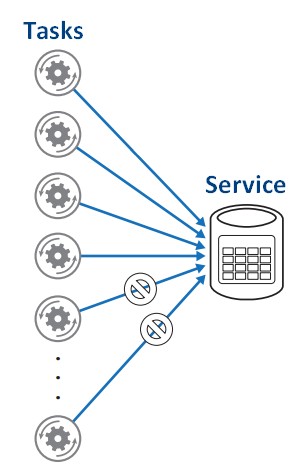Viele Programme in der Cloud basieren darauf, dass sie Tasks ausführen, welche Services aufrufen. Wenn aber zu viele Tasks auf denselben Service zur gleichen Zeit zugreifen wollen, kann dies zur einer Überlastung des Service führen, was sich in Verzögerungen oder nicht Erreichbarkeit äußern kann (siehe Bild).